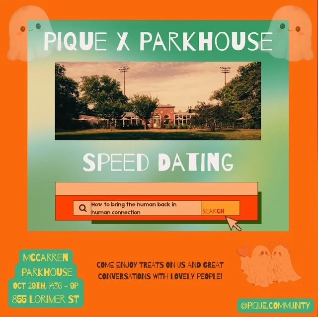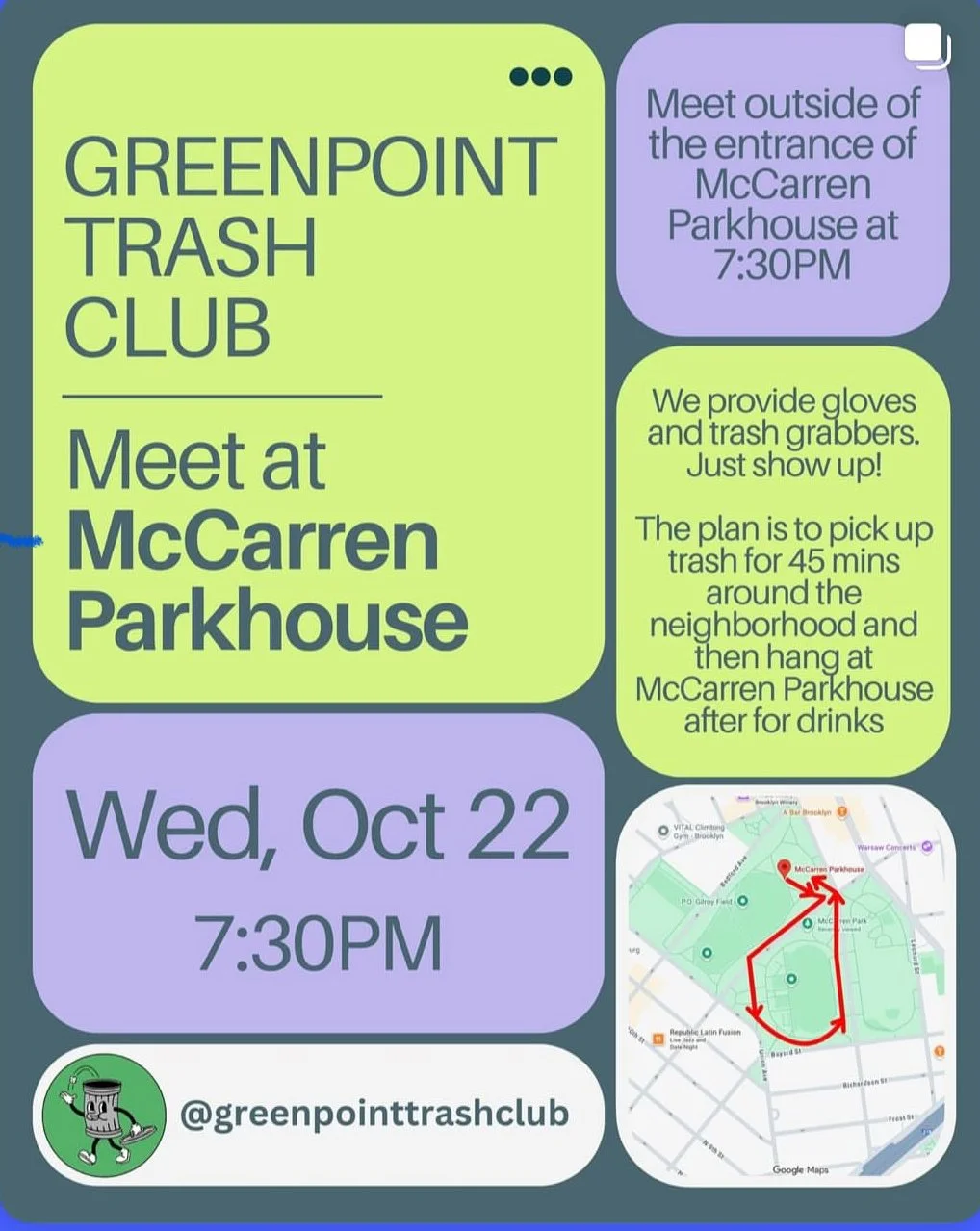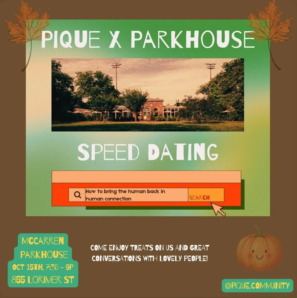 Karaoke Wednesdays @ 7pm Eliza Spear's Brooklyn is the Studio Live Recording Tuesday October 14 @ 6PM Greenpoint Trash Club (meet on front steps) Wednesday October 15 @ 7:30-8:15PM for work, then drinks at Parkhouse Pique Speed Dating Wednesday October 15 @ 7:30PM-9PM MIdwest Fest by Brooklyn Euchre Club Thursday October 16 @ 7PM DJ Fire Aux Saturday October 18 @ 7pm -11pm Verklempt! Launch Party Sunday October 19 @ 5-9pm Collage with Kyle Lane Monday October 20 @ 6:30PM-8:30PM Neighborhood Concert Series October w Recess, Steph Howard, & Morgan Reilly 21 @ 7:30PM-9PM Craft Night - DIY Bagm Charms October 22 @ 6PM-9PM Journaling & Jazz Friday October 24th @ 6:30PM Parkhouse Jazz Friday October 24th @ 8PM BIPOC Therapist Social Monday October 27th @ 7PM Collage Night Wednesday October 29 @ 6PM-8:30PM Pique Speed Dating Wednesday October 29 @ 7:30PM-9PM Brooklyn Euchre Club Pickup Games Thursday October 30th @ 7PM Collage with Kyle Lane Monday November 3 @ 6:30PM-8:30PM New York Philosophy Club Wednesday November 5 @ 7PM 30s Speed Dating presented by Skip the Small Talk Thursday November 6 @ 6:45PM-9PM Brooklyn Euchre Club Pickup Games Thursday November 13 @ 7PM Collage with Kyle Lane Monday November 17 @ 6:30PM-8:30PM Skip the Small Talk Thursday November 20 @ 6:45PM-9PM Jazz Friday November 21st @ 7:30PM New York Philosophy Club Wednesday November 26 @ 7PM Brooklyn Euchre Club Pickup Games Thursday December 4 @ 7PM New York Philosophy Club Wednesday December 17 @ 7PM Brooklyn Euchre Club Pickup Games Thursday December 18 @ 7PM Private Events - Email Us: events@mccarrenparkhouse.com Join our Mailing List for Upcoming Event Announcements and More!